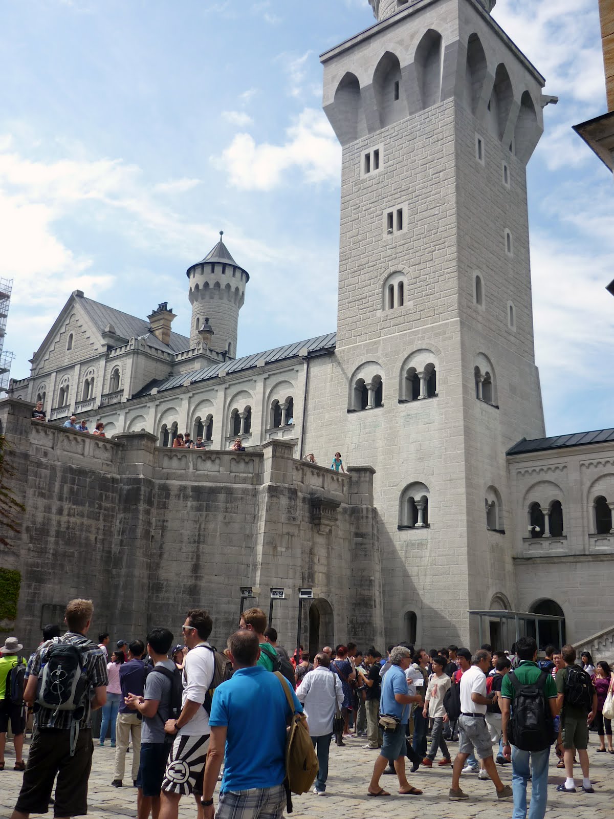 Arriving at the base of the castle we weren’t quite prepared for the chaos that such a major tourist attraction (scaffolded or otherwise) can create in the Bavarian Alps in the height of summer. If you can imagine narrow roadways and peak hour traffic, combined with horse drawn carriages, double decker buses and pedestrians walking in between them all, you may come close to the scene that awaited us. It seemed that we had truly underestimated the attraction of this iconic landmark and the scale of its commercialism. It did in fact have all the popularity of Disneyland, but without the organization.